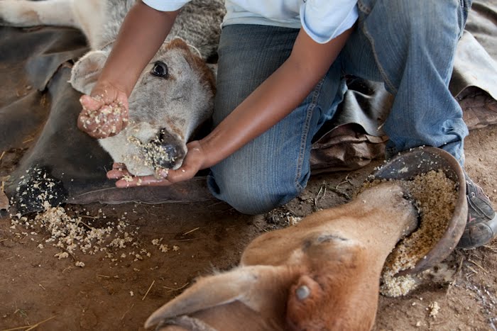 Some of the cows can't get up. They get hand fed, turned and cleaned a couple of times a day.